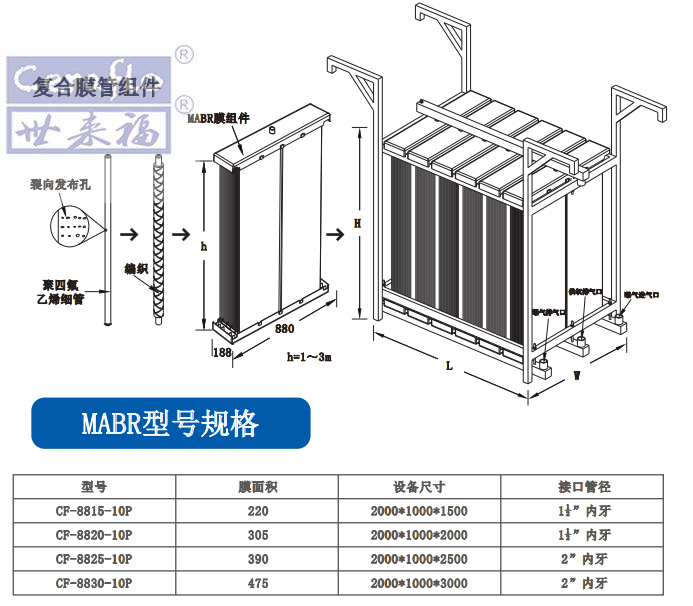 Ceraflo-MABR膜采用中空纖維膜結(jié)構(gòu),由自主專利技術(shù)及生產(chǎn)的微米級PTFE膜絲。讓膜絲內(nèi)的空氣從微米級的孔隙向外滲透出去,讓水中的溶解氧得到更好的提升且能耗更低。對生物膜的分布以及碳源的利用有著更好的提升效果,大部分的好氧缺氧微生物會富集在膜絲內(nèi)側(cè)。該生物膜反應(yīng)單元組成的MABR,能夠高效處理污水,可減小反應(yīng)池的大小,降低建造處理成本和減少用地。